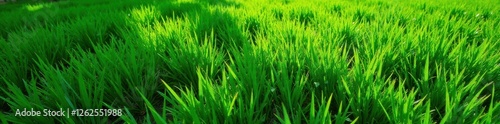 © Theerawat, Fototapeta premium Lush green lawn viewed from above, showing texture and blades , plant, view, growth