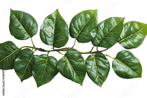 © FunTales, Fototapeta premium Lush green leaf branch isolated on black background showcasing vibrant foliage detail with on transparent background