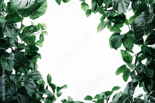 © Yuliia, Naklejka premium Lush green leaves forming a natural frame on a white background beautifully arranged
