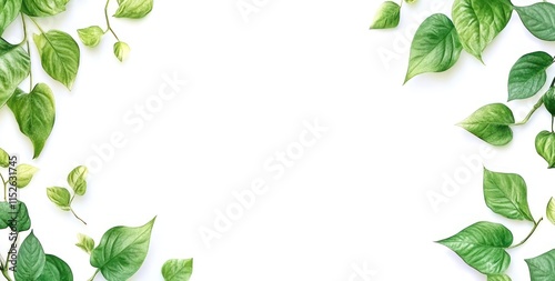 © BerkahStock, Naklejka premium Lush green leaves frame on white background.