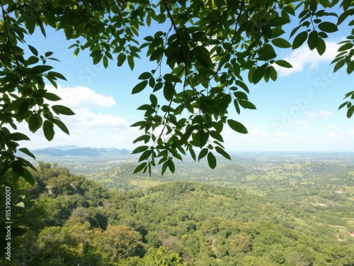 Obraz premium Lush green leaves frame vibrant landscape panorama, flora, bright green