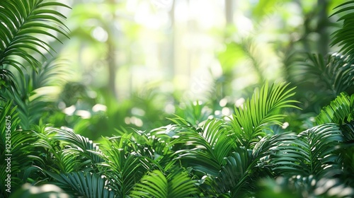 © Thanyaporn, Fototapeta premium Lush Green Leaves in Tropical Forest Backdrop with Soft Light