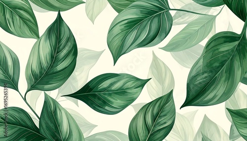 © Yesi, Fototapeta premium Lush green leaves on a white background