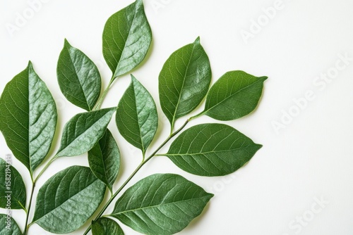 Fototapeta premium Lush Green Leaves on White Background Refreshing Natural Botanical Still Life...
