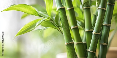 Obraz premium Lush green lucky bamboo stalks with vibrant leaves positioned elegantly,...