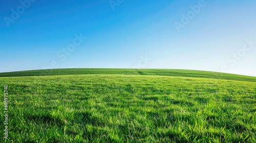 © B 7 YOU, Naklejka premium Lush green meadow under clear blue sky