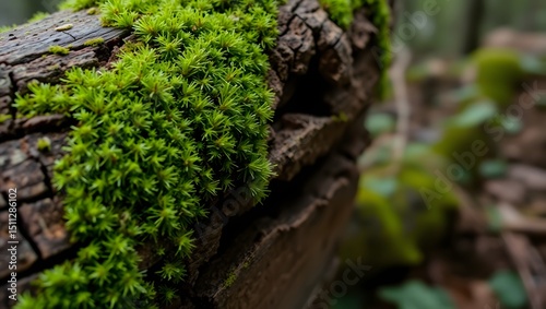 © ghevioel, Fototapeta premium Lush Green Moss Growing on Decaying Log in Forest