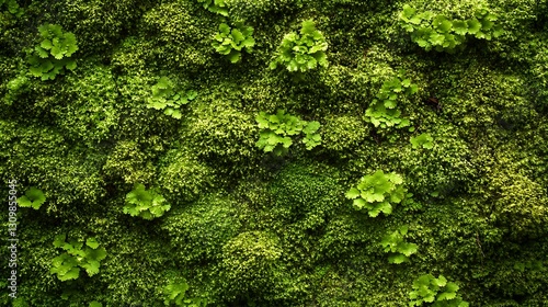 © Tcukimay, Fototapeta premium Lush green moss texture with small plants.