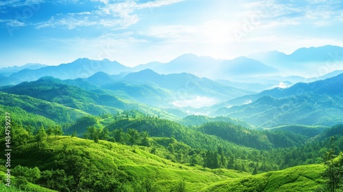 © Agri, Fototapeta premium Lush green mountain range stretches under a vibrant sky.