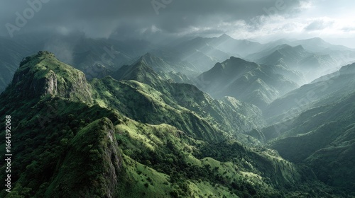© Es, Obraz premium Lush green mountain range under a dramatic sky