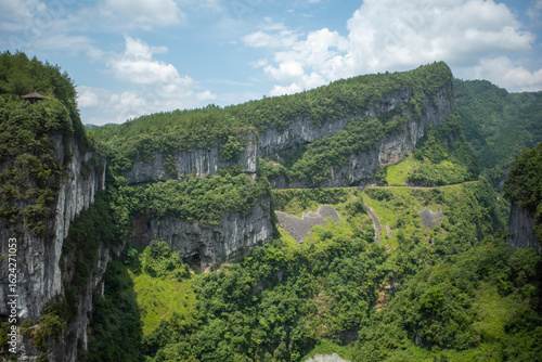 © jinhongljh, Fototapeta premium Lush Green Mountains with Winding Road