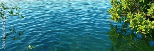 Naklejka premium Lush Green Nature Reflecting in Still Water