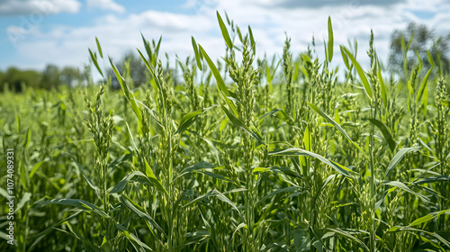 © Theeramisu, Fototapeta premium Lush Green Oat Plants in Early Spring Sunshine