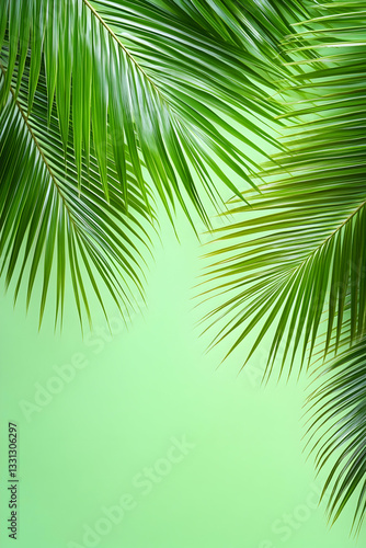© CHURIN, Naklejka premium Lush green palm fronds against a light green background