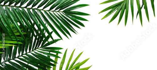 Naklejka premium Lush green palm fronds fill the image, with sharp detail and vibrant color against a black backdrop