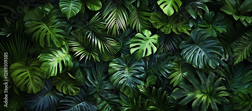 © nayemur, Fototapeta premium Lush green palm leaves create a dense tropical foliage background with vibrant textures and a sense of depth perfect for evoking a natural exotic and summery vibe in designs