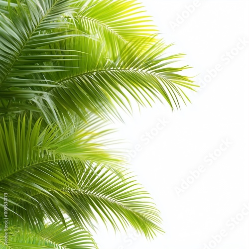 Naklejka premium Lush green palm leaves create a vibrant, tropical aesthetic against a white...