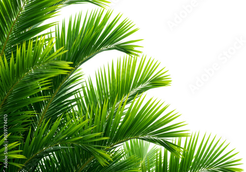 Fototapeta premium Lush green palm leaves create a vibrant tropical natural pattern, symbolizing growth, freshness, and exotic beauty perfect for various design projects.