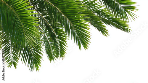 Naklejka premium Lush green palm leaves create tropical vibe, perfect for summer aesthetics and nature themes