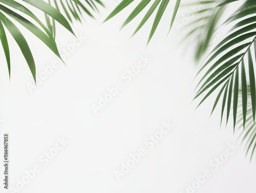 Naklejka premium Lush green palm leaves frame a bright, minimalistic background.