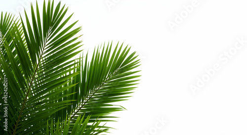 © sarinya, Obraz premium Lush Green Palm Leaves Isolated on White Background for Nature Theme