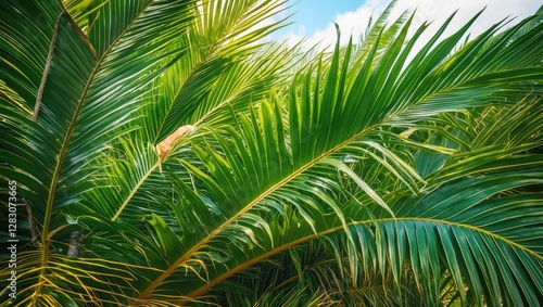 Fototapeta premium Lush Green Palm Leaves Under Bright Sky in Beautiful Costa Blanca Province