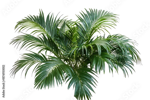 Fototapeta premium Lush green palm tree fronds isolated on transparent background. Tropical palm tree isolated on white background.