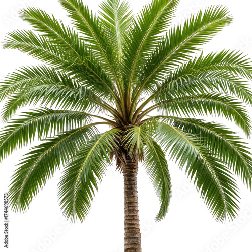 © Dusky, Obraz premium Lush, green palm tree with detailed leaves against black background