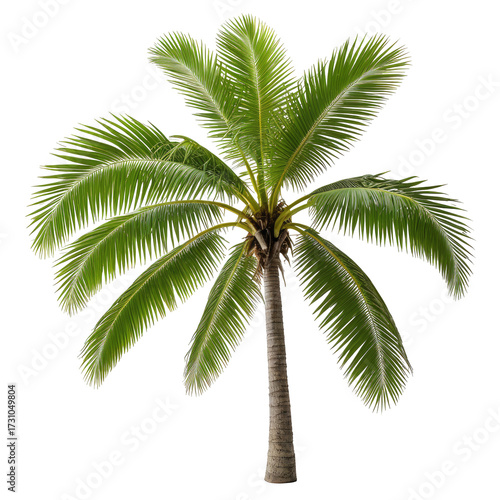 © Dedi, Fototapeta premium Lush green palm tree with fronds; isolated against black background