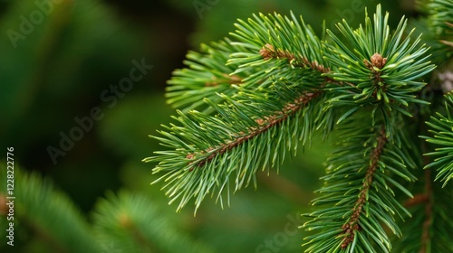 Fototapeta premium Lush Green Pine Branch Close Up Nature Photography