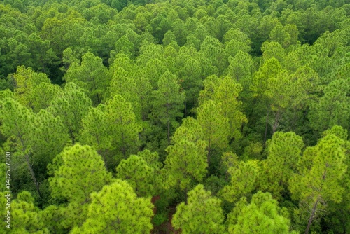 © FauziNh, Naklejka premium Lush green pine forest canopy (2)