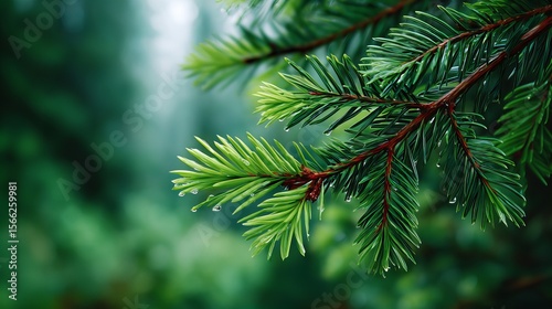 Obraz premium Lush Green Plant Branch With Water Droplets