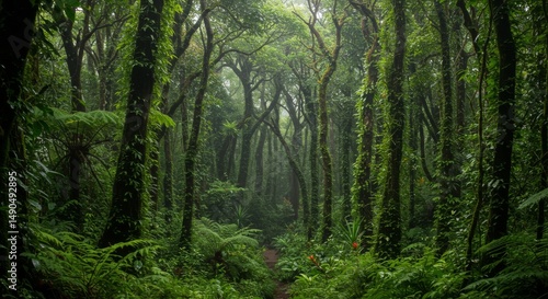 © SweaterWeather, Obraz premium Lush Green Rainforest Path