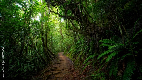 © RenderNest Studio, Obraz premium Lush green rainforest trail path