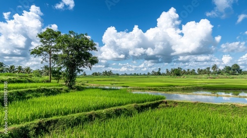 © Nurin, Obraz premium Lush Green Rice Fields Landscape