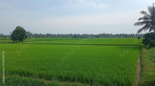 © ali imron, Fototapeta premium Lush Green Rice Paddy Field