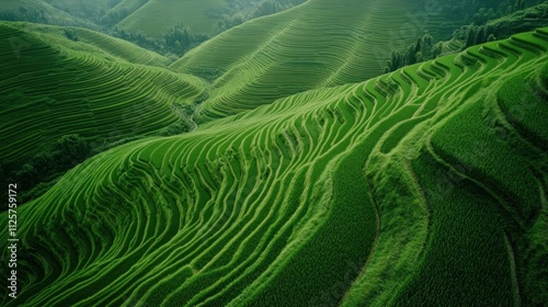 © styloo, Fototapeta premium Lush green rice terraces cascading down hillside.