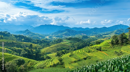 © MST, Fototapeta premium Lush Green Rice Terraces in a Mountain Valley