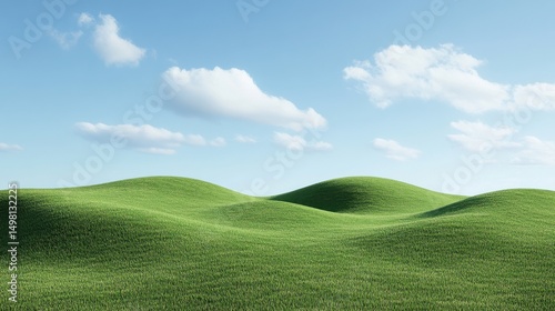 © Fauzerene, Fototapeta premium Lush Green Rolling Hills Under a Clear Blue Sky with Soft Clouds