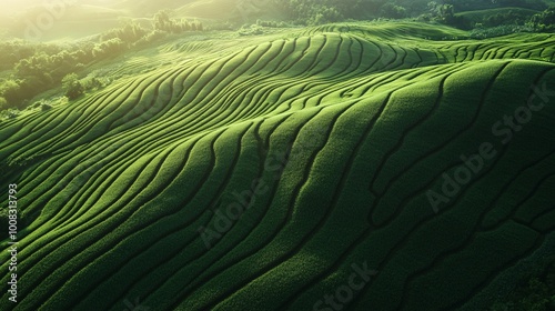© Jari.art, Fototapeta premium Lush green rolling hills under sunlight