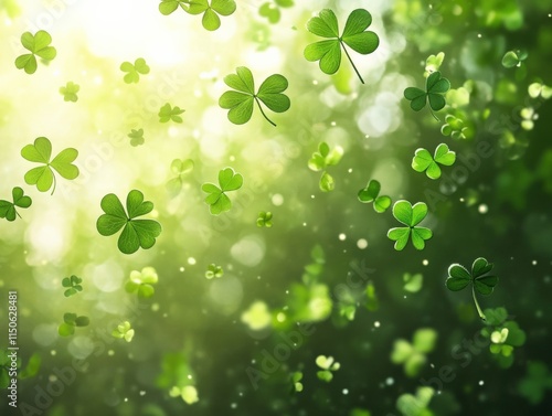 Fototapeta premium Lush Green Shamrocks in Sunlit Forest
