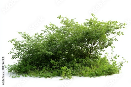 © The Little Hut, Fototapeta premium Lush Green Shrubbery on Isolated White Background, Ideal for Landscaping Design and Architectural Visualization