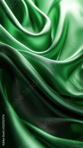 Fototapeta premium Lush green silk fabric draping in gentle waves, highlighting texture and sheen under soft lighting