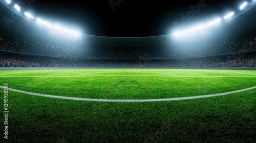 Obraz premium Lush Green Soccer Field Under Bright Stadium Lights at Night