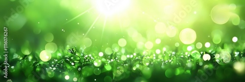 Fototapeta premium Lush Green Spring Background with Soft Bokeh Effect and Blurred Bright Light for Nature, Freshness, and Renewal Themes