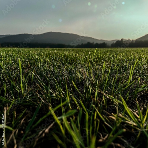 © BOJOShop, Fototapeta premium Lush Green Spring Meadow Grass Blades Sunny Sky Landscape