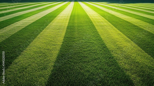 © cortado, Obraz premium Lush green striped lawn showcasing vibrant patterns and healthy grass in a sunlit setting.