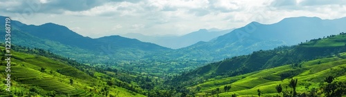 Fototapeta premium Lush Green Terraced Rice Fields In Mountain Valley