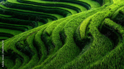Fototapeta premium Lush green terraced rice fields in undulating patterns rice terraces agriculture