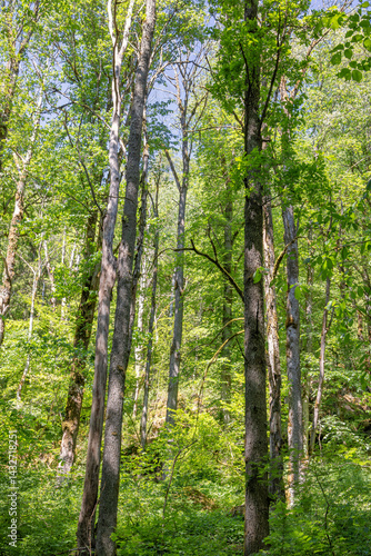 Naklejka premium Lush green tree canopies in a deciduous forest